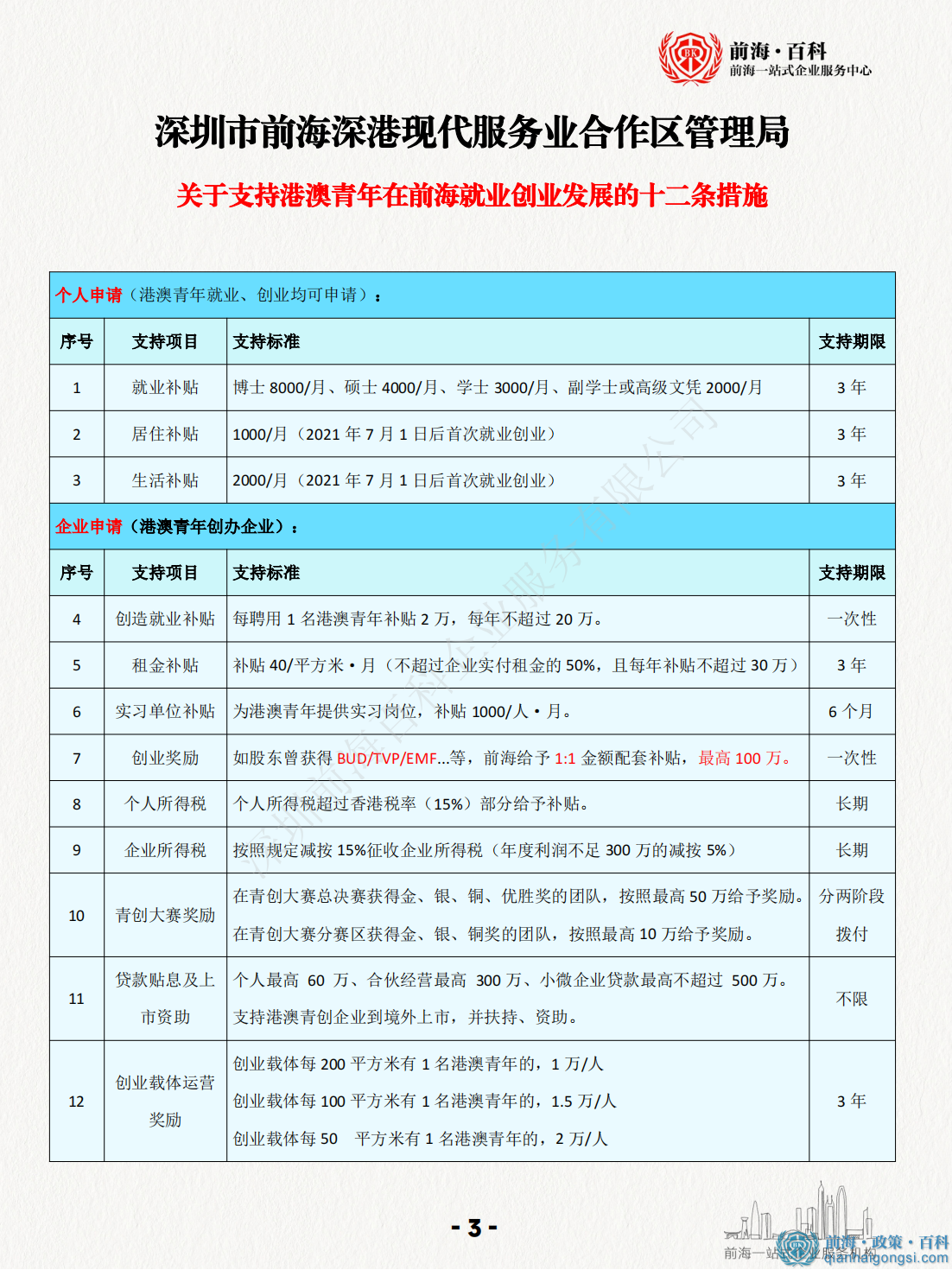 根據(jù)《深圳市進(jìn)一步支持港澳青年就業(yè)創(chuàng)業(yè)實(shí)施細(xì)則》、《支持港澳青年在粵港澳大灣區(qū)就業(yè)創(chuàng)業(yè)的實(shí)施細(xì)則》等文件,深圳前海推出一...詳細(xì)>>