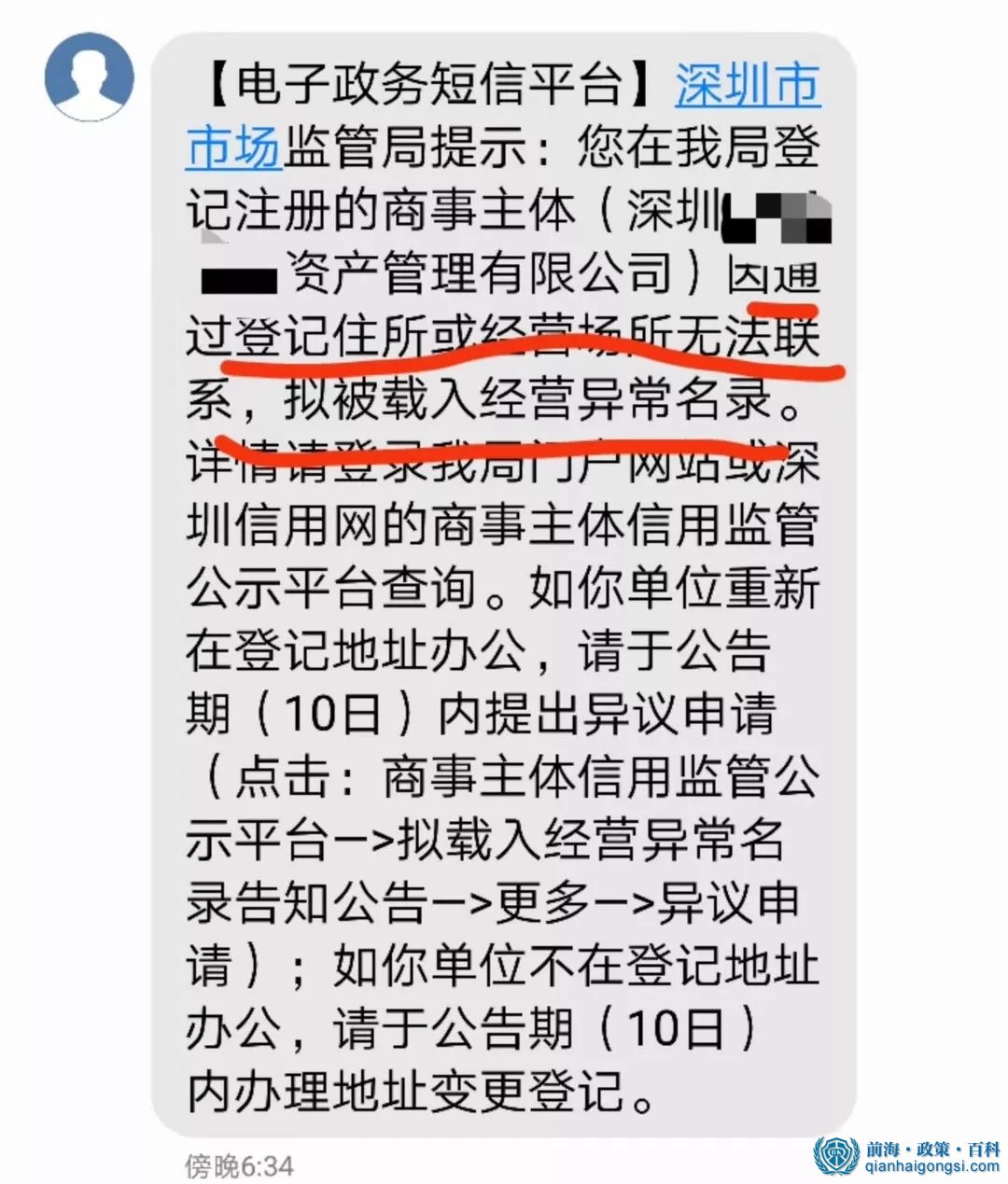 另外前海百科在這里也提醒一下各位個體戶老板,上面所說的咱們也適用!個體戶沒有報送年報的;或是年報隱瞞真實情況、弄虛作假的;或是地址問題,讓工商局找不到的…都會被列入“經營異常名錄”。