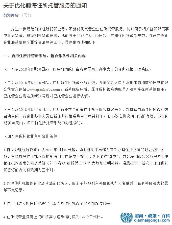 關(guān)于優(yōu)化前海住所托管服務(wù)的通知詳情,點擊圖片查看大圖